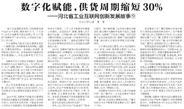 4月14日,河北日报数字经济专版记者曹智报道:“数字化赋能,供货周期缩短30%——河北省工业互联网创新发展故事⑨”