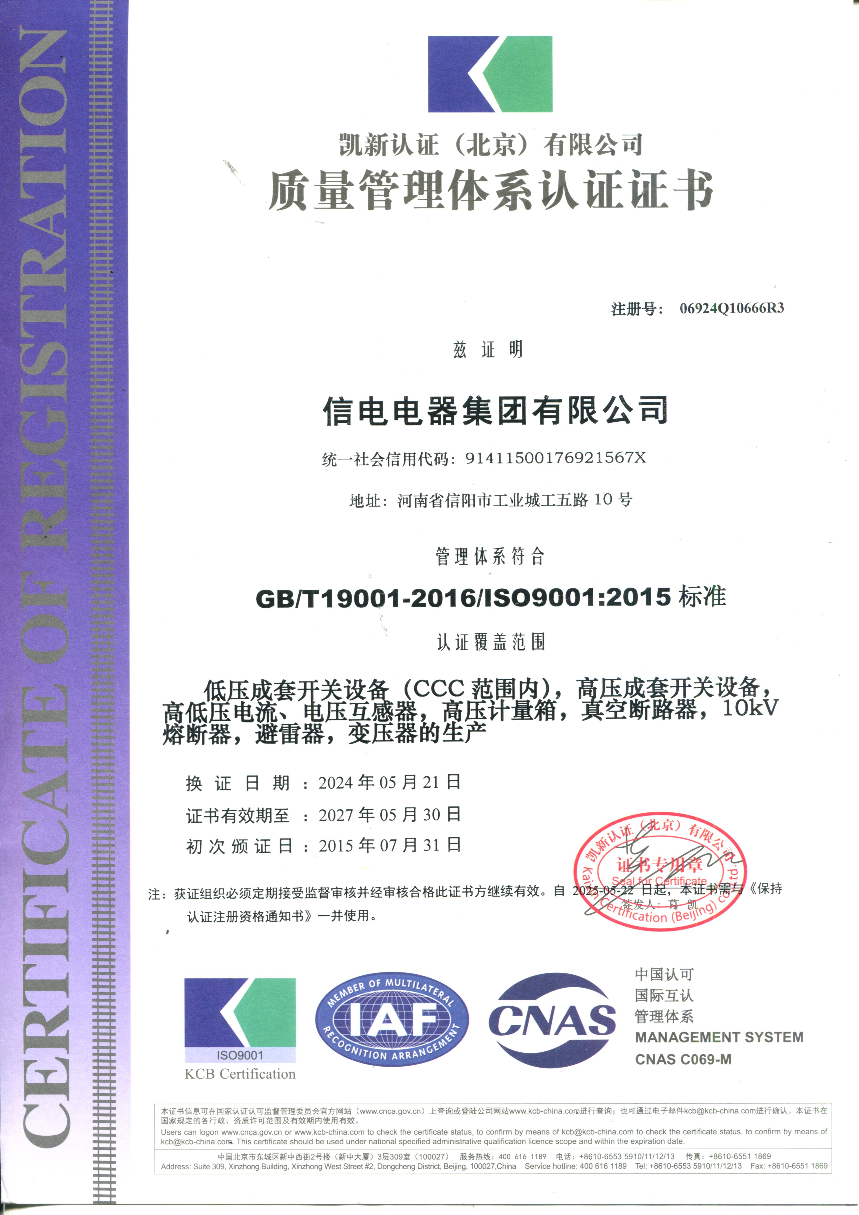 供应商信息公示-信电电器集团有限公司资质
